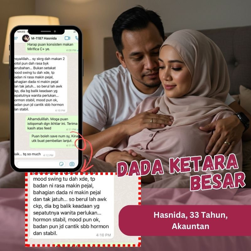 Di sinilah letaknya keistimewaan Mirifica C+, hasil kepakaran khusus dalam memilih ekstrak Pueraria Mirifica berkualiti tinggi, diproses dengan teknologi pengekstrakan canggih dan dikawal rapi pada peratusan estrogen semula jadi yang ideal. Sebab itulah, formulasi Mirifica C+ mengambil masa lebih 5 tahun untuk dibangunkan secara klinikal dan disahkan melalui kajian jurnal perubatan antarabangsa sebagai antara yang terbaik untuk membentuk semula dan membesarkan payudara wanita secara selamat.